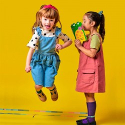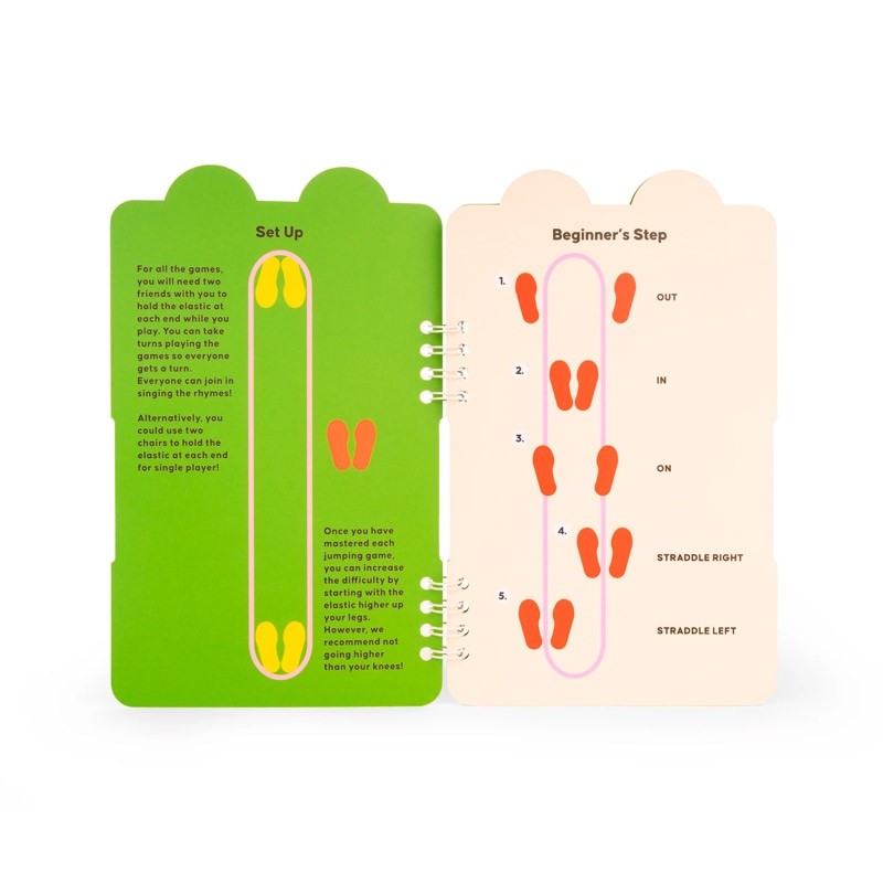 Incluye una goma de saltar multicolor y libretos con 9 variantes de juego o propuestas