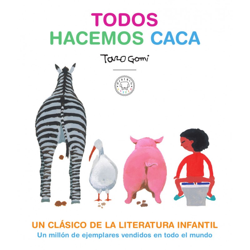 Este libro del genial Taro Gomi, nos explica de una manera sencilla y rigurosa, cómo todos hacemos caca, animales y personas, bebés, niños y mayores. Todos sin excepción hacemos caca.