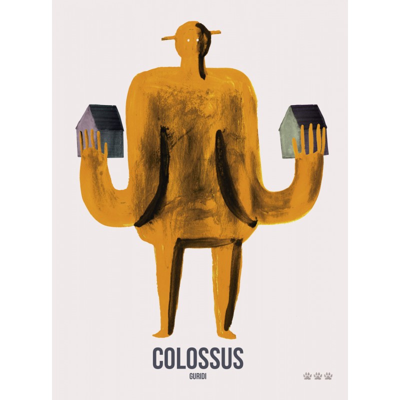 El álbum ilustrado más colosal de Guridi. Su protagonista es el gran Colossus, que come al día 329.457 patatas crudas y puede levantar con cada mano 845.346.783 piedras. Colossus es enorme pero ¿sabes lo más increíble? Le basta un solo beso mio, un beso chiquitito, para quedarse completamente dormido