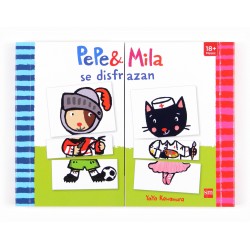 Un libro juego perfecto para los bebés. Combinas las solapas de este resistente libro de cartón y disfraza al perrito Pepe y la gatita Mila de un montón de cosas: de caballero, de médico, de jardinero... ¡¡Puedes combinarlos como quieras!! ¡Que divertido!