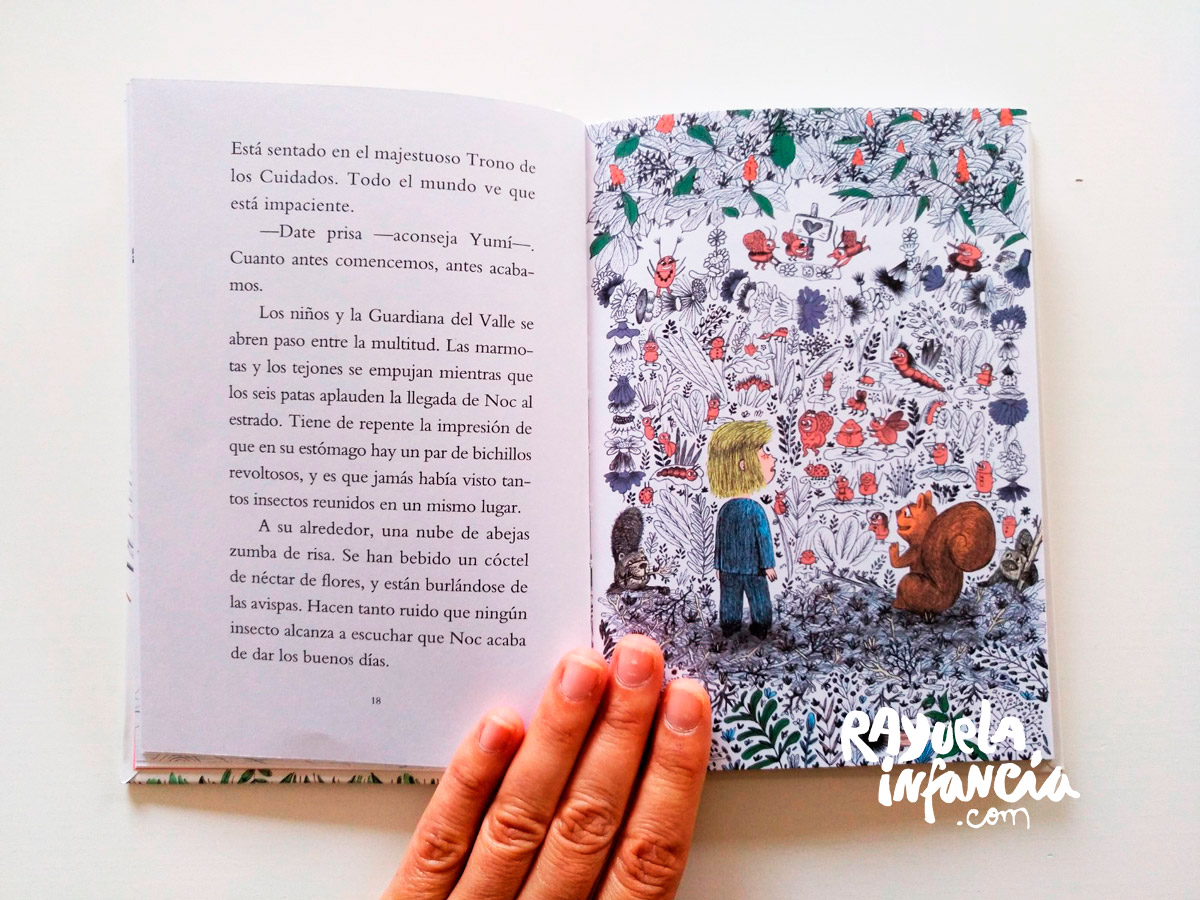 El texto de El pequeño cuidador de insectos de Nastasia Rugani plantea un tema muy importante pero de manera sutil, sin calzador, desde la buena literatura, en un relato que podemos disfrutar leyendo tanto si estamos comenzando a leer por nuestra cuenta como si somos ya adultos lectores.