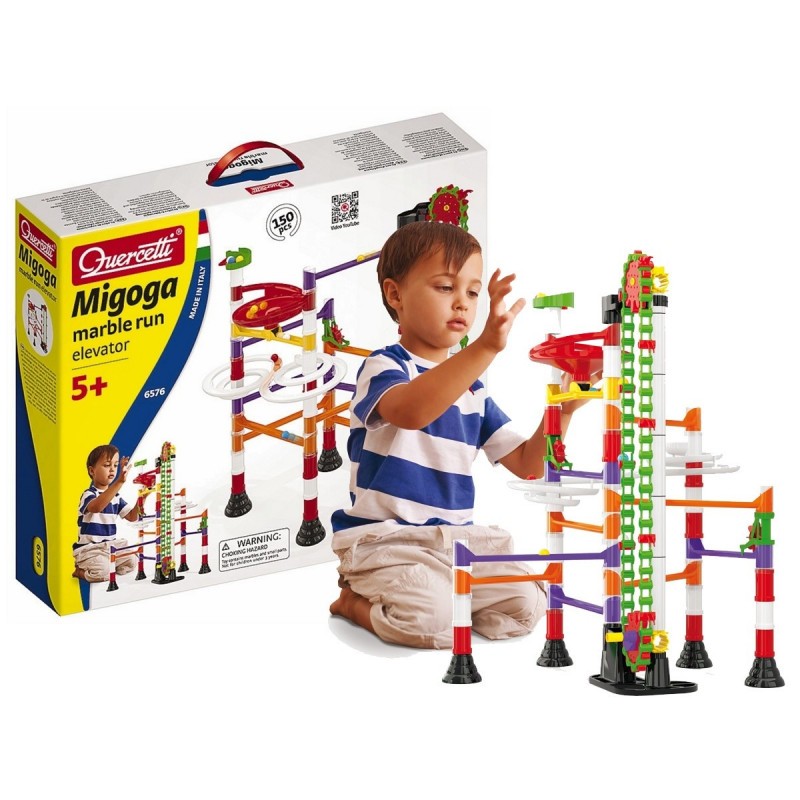 Un extraordinario juego de construcción con ascensor. Con esta migoga gigante, puedes crear tus propias pistas de canicas, reproduciendo los modelos dibujados en las cajas. El efecto visual es ¡sorprendente!