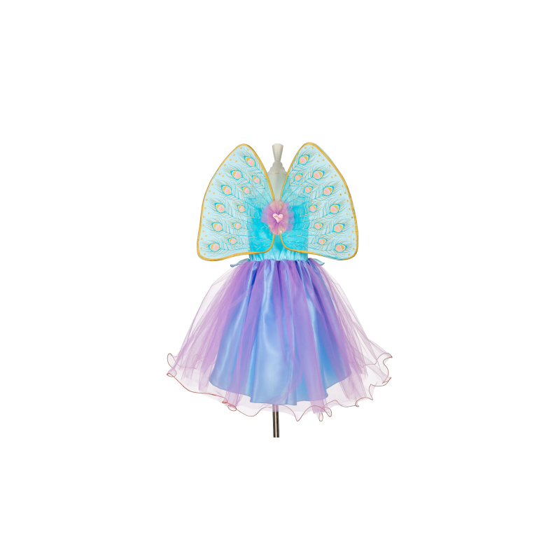 Un vestido de fantasía con alas multicolor para volar como una mariposa, como un hada, un pavo real... Todo es posible con tu imaginación.