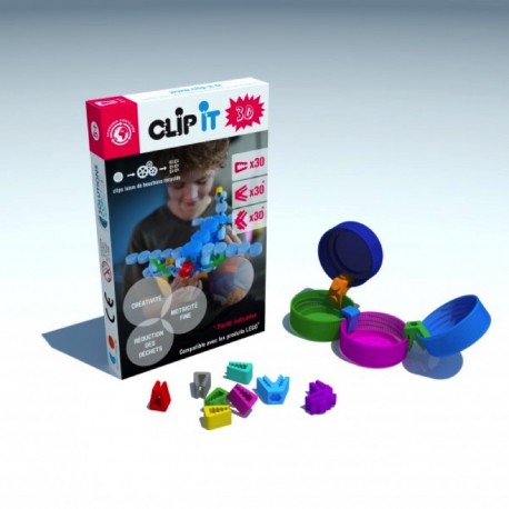 CLIP IT es creativo, educativo y es un juego de construcción sostenible. Recolecta tapones de plástico en casa y úsalos con los clips incluidos en esta caja para crear miles de figuras. Ayuda a reducir deshechos de plástico a la vez que aprendes y juegas.