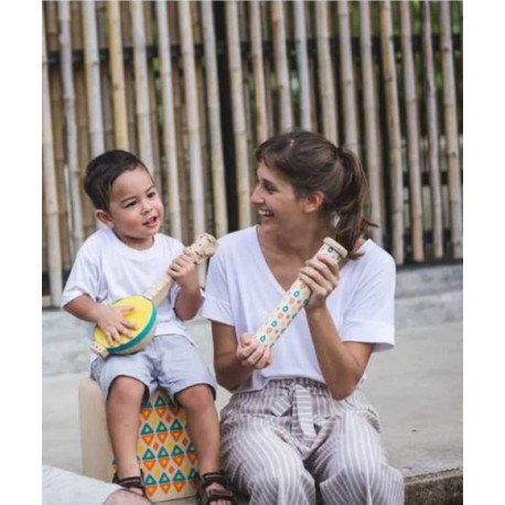 Un instrumento musical que inspira a los más peques, con 3 cuerdas ajustables y 3 clavijas de afinación. Un juguete sostenible, realizado en madera de caucho de manera responsable.