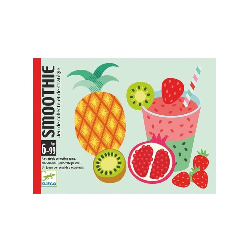 Un juego de cartas de los más fresquito y veraniego, ideal para acompañarte en tus viajes. 56 cartas para jugar a combinar. Con un poco de estrategia y otro tanto de suerte ganas la partida, creando ricos smoothies al combinar las frutas y verduras como la tarjeta que haya en el centro de la mesa.