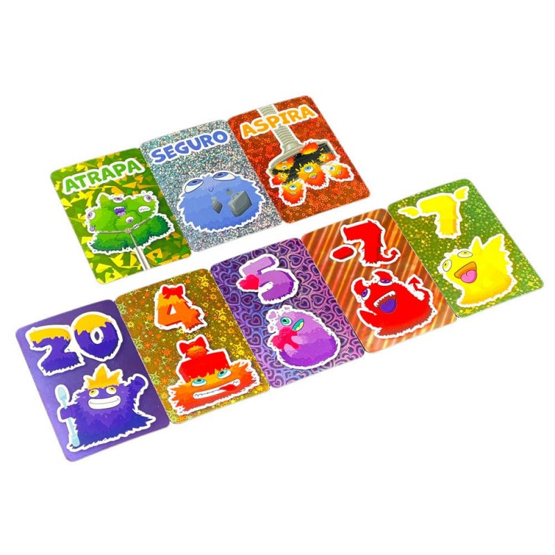 Incluye: 110 cartas de pelusas, 62 cartas de número, 36 cartas especiales, 12 cartas de acción y reglamento