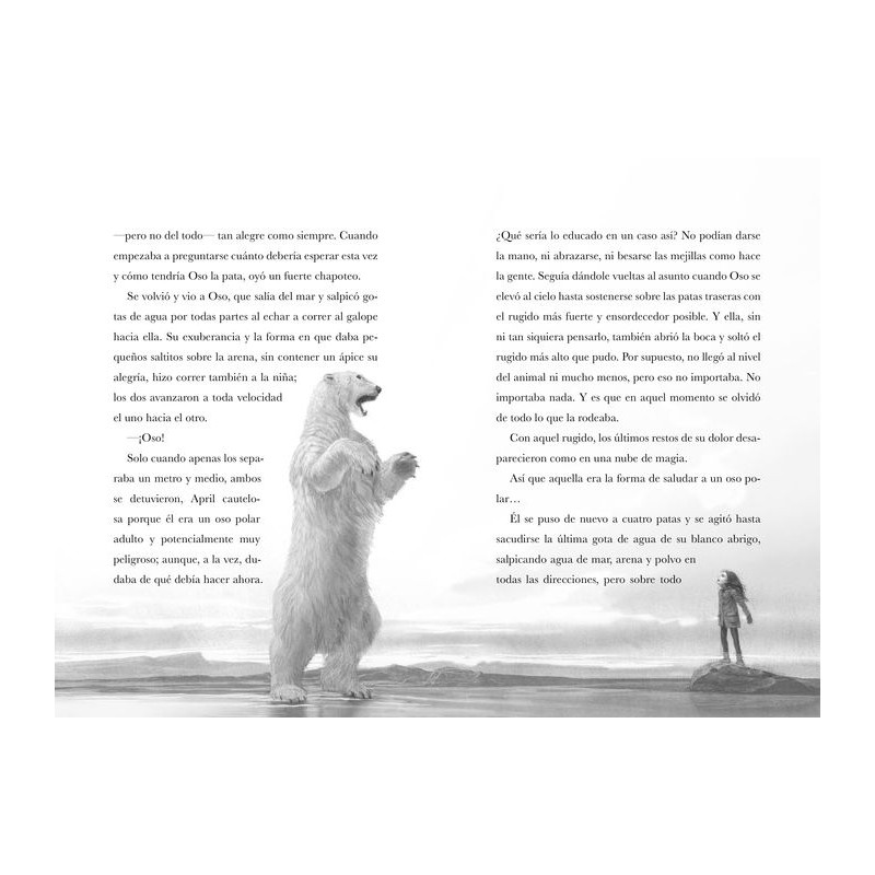 Ya no quedan osos polares en la Isla del Oso. O, al menos, eso le dijo su padre el día que se trasladaban al Ártico, donde él iba a trabajar durante los siguientes seis meses. Pero un atardecer, a April le parece ver una enorme silueta en el horizonte. Recortado contra el sol, algo se mueve. Sucede en un abrir y cerrar de ojos. Algo grande que avanza a grandes pasos y totalmente inesperado. April vuelve a parpadear. Sea lo que sea, ya no está. Pero podría jurar que acaba de ver un oso polar.
