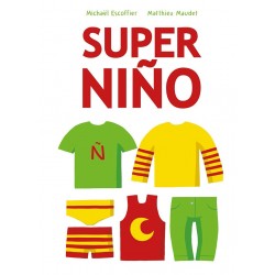 Divertido libro troquelado de cartón para leer en dos direcciones, en el que un niño le presta su ropa a su amiga para que se convierta en Super Niña, y a la inversa.