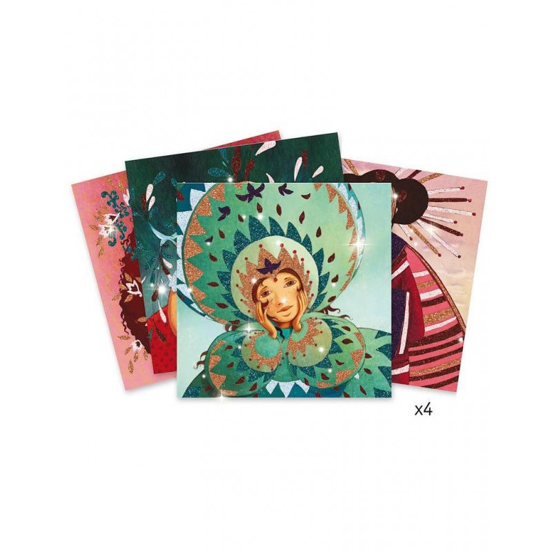 Cuatro preciosas láminas con ilustraciones de Rebecca Dautremer para que completes con purpurinas de distintos colores. La combinación es infalible, quedan perfectas para enmarcar y además el proceso es muy disfrutable porque la técnica, aunque requiere precisión, es sen