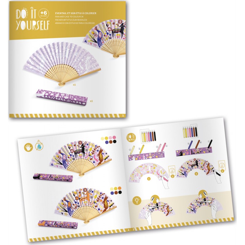 Un kit que incluye un abanico con caja para colorear y personalizar este complemento tan importante en el caluroso verano.