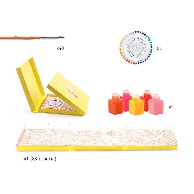 Un kit para crear pintando sobre seda un hermoso pañuelo que puedes usar después. Un precioso fular de seda para lucir o regalar.