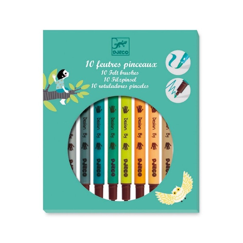 10 rotuladores pincel en la gama de colores terciarios que van del verde al marrón, pasando por anaranjados y ocres. Una bonita paleta de colores en estos 10 rotuladores de doble punta: una tipo pincel y la otra fina para los detalles.