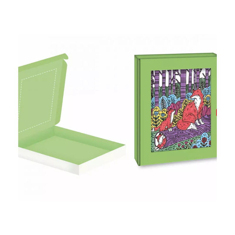 El kit incluye 6 cuadros de pintura mágica. Giran en torno al tema del bosque y representan a unos adorables animales viviendo en la naturaleza.