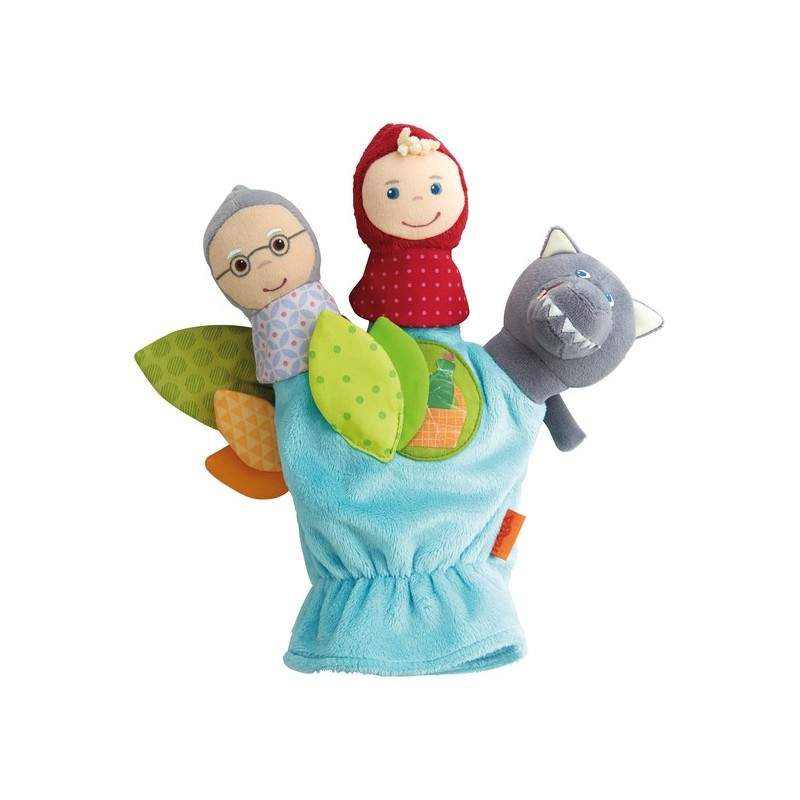 Este guante marioneta es perfecto para contar la historia de Caperucita Roja a los más pequeños porque en él aparecen reunidos los principales personajes y también como juego de exploración, ya que los personajes presentan distintas texturas y sonidos muy atractivos.