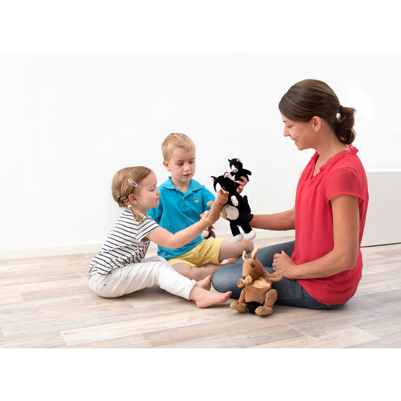 Con estas marionetas, los niños se sumergen en el mundo de la fantasía y viven emocionantes historias con las marionetas madre-hijo